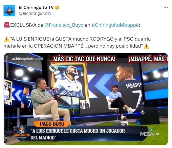 据报道,巴黎圣日耳曼主教练路易斯-恩里克非常喜欢德里罗德里戈的才华和实力。他认为德里罗德里戈可以成为球队的重要一员,并希望通过姆巴佩交易将他引进球队。然而,帕卡-布约认为这种可能性非常低,巴黎圣日耳曼无意放弃姆巴佩。